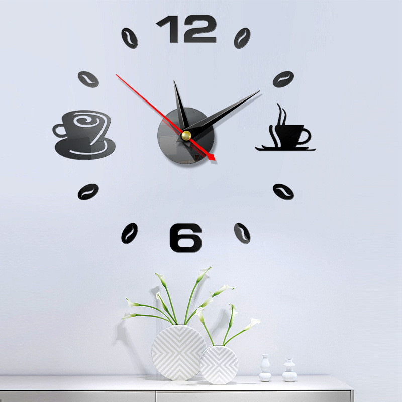 3D Mirror Wall Clock DIY Coffee Cups Decor Acrylic