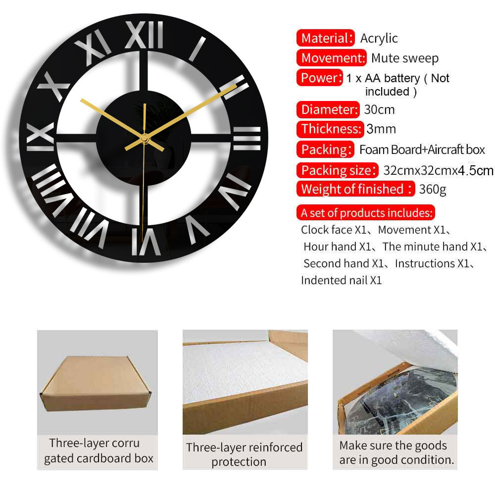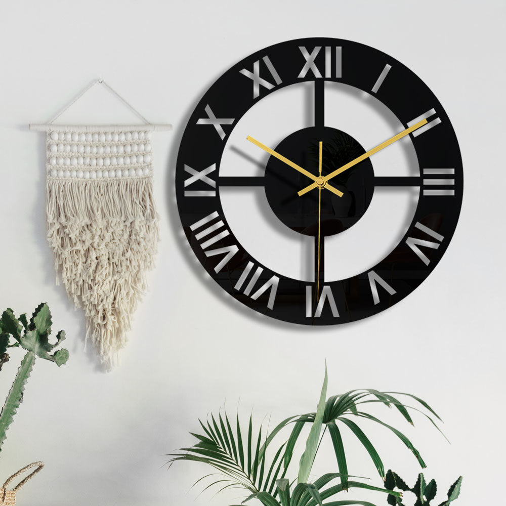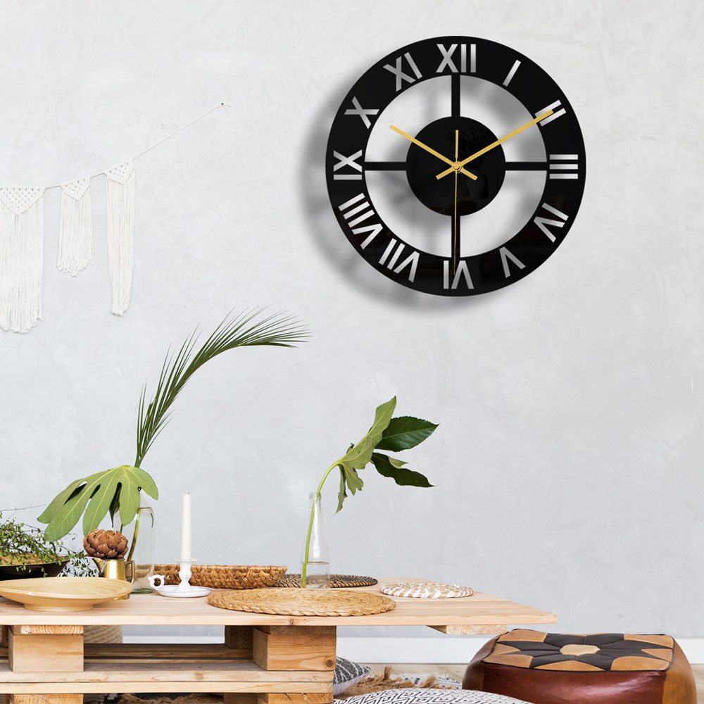 3D Modern Design Black Acrylic Wall Clock Round Digital