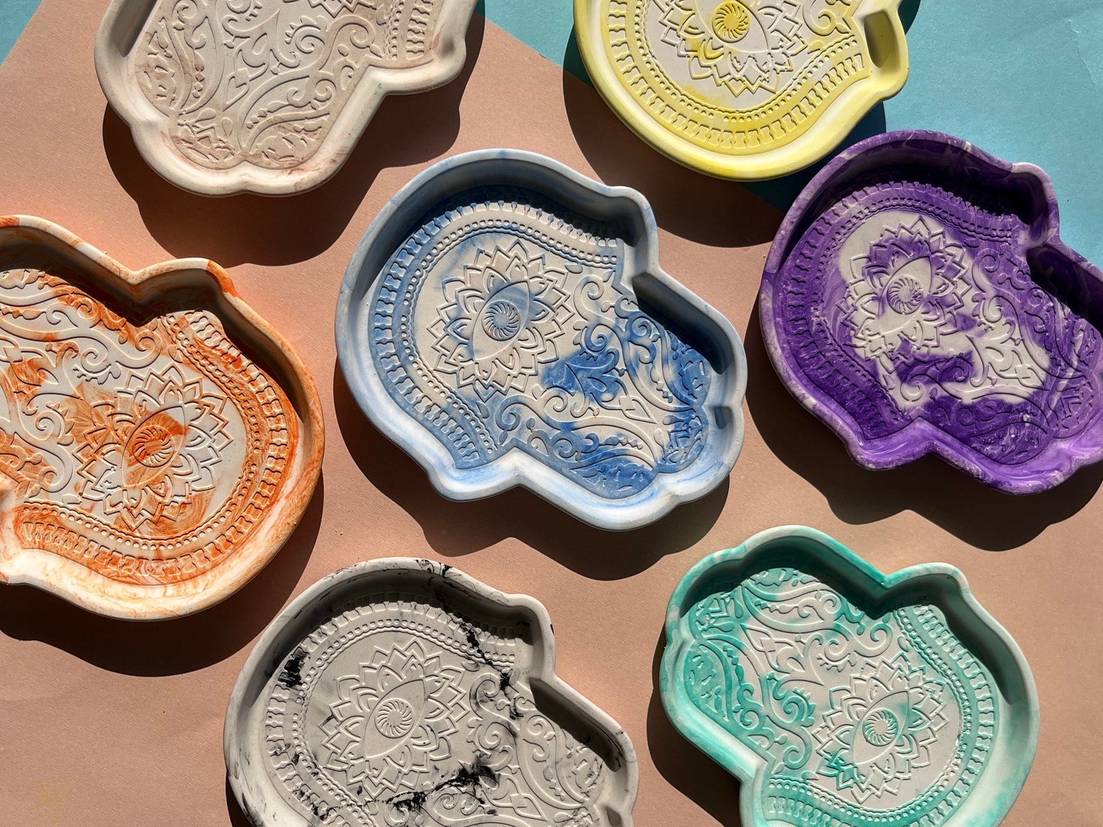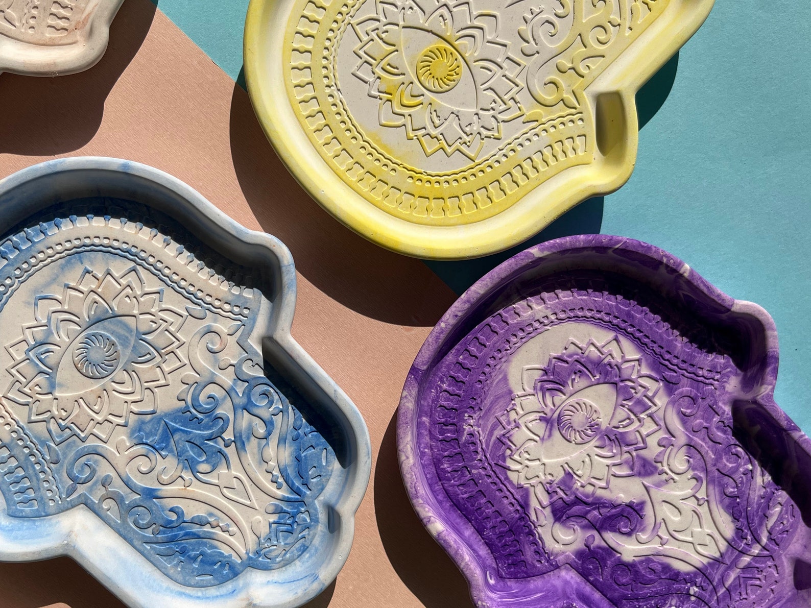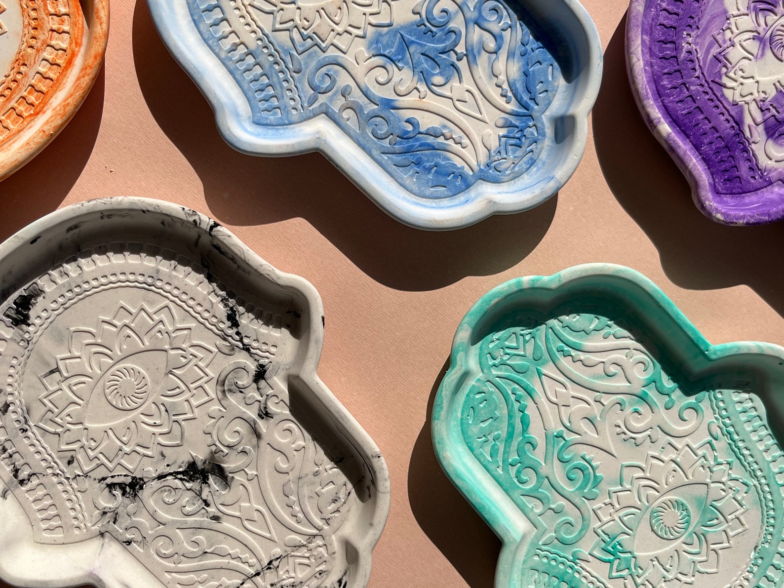 The Hamsa hand, with its origins rooted in ancient Middle Eastern cultures, is a powerful symbol believed to protect against negative energies. This plate holds both aesthetic and spiritual significance.
