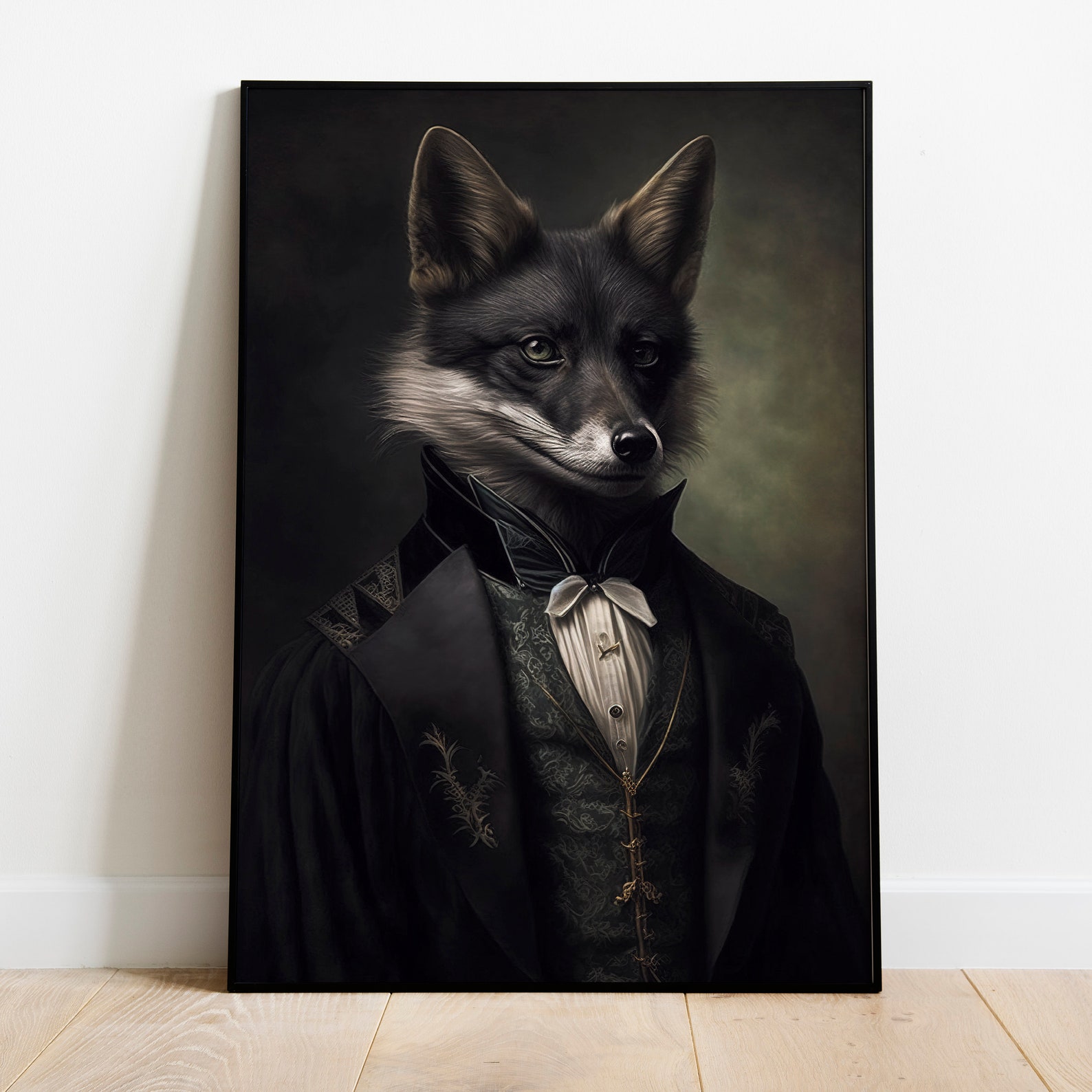 Gothic Black Fox Vintage Poster, Art Poster Print