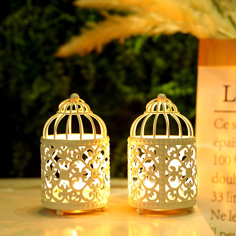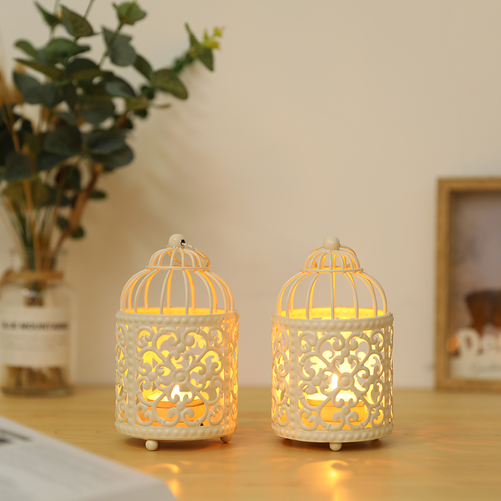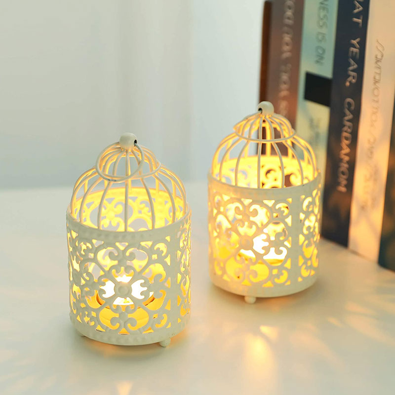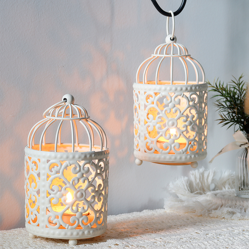 Hollow Hanging Bird Cage Candle Holder Candlestick, White