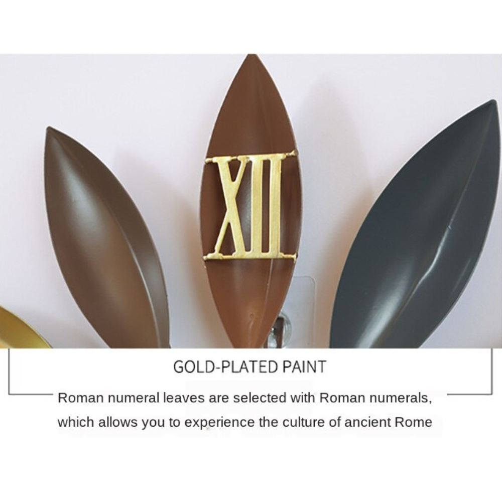Large Iron Leaves Silent Hanging Clock with White Hands