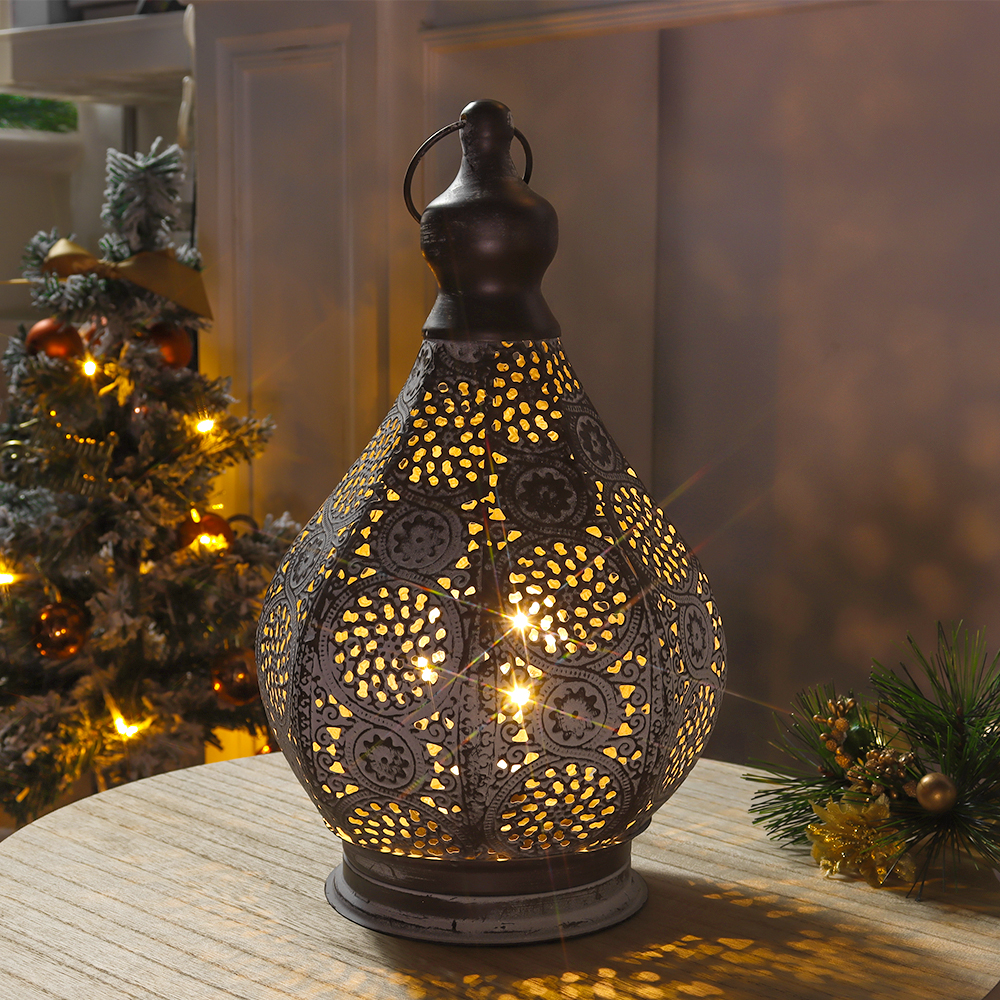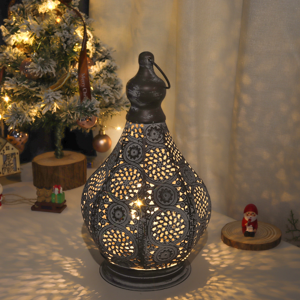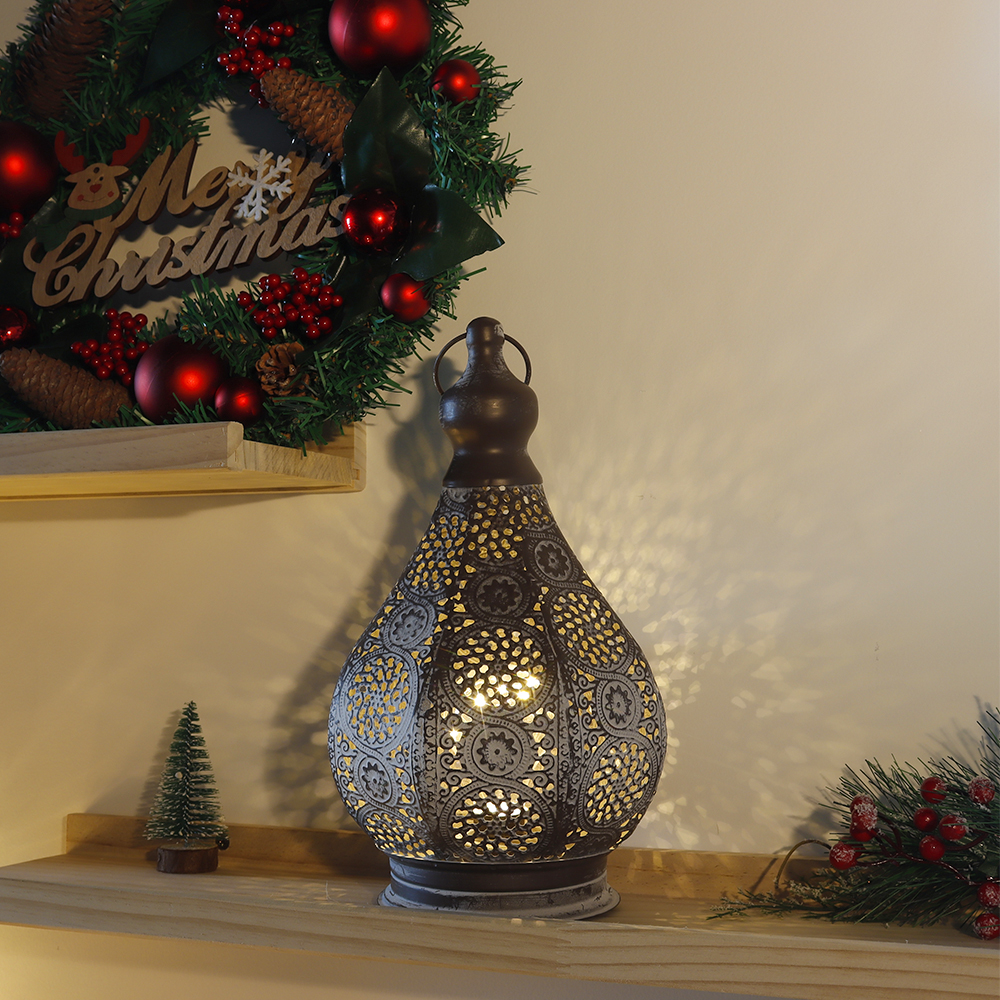 Moroccan Battery Powered Table Lamp Metal Lantern Lamps Candle Holder