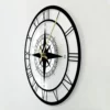 Retro Compass Direction Map Exclusive Silent Wall Clock, Without LED