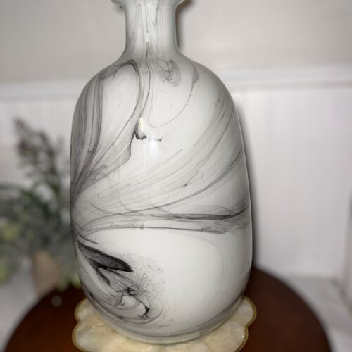 The glossy finish and 8″ length make this vase a perfect statement piece for any decor. The vase is a unique and original piece of art glass that is sure to impress. Pre-owned by collector. In great condition. Please see pictures for details.